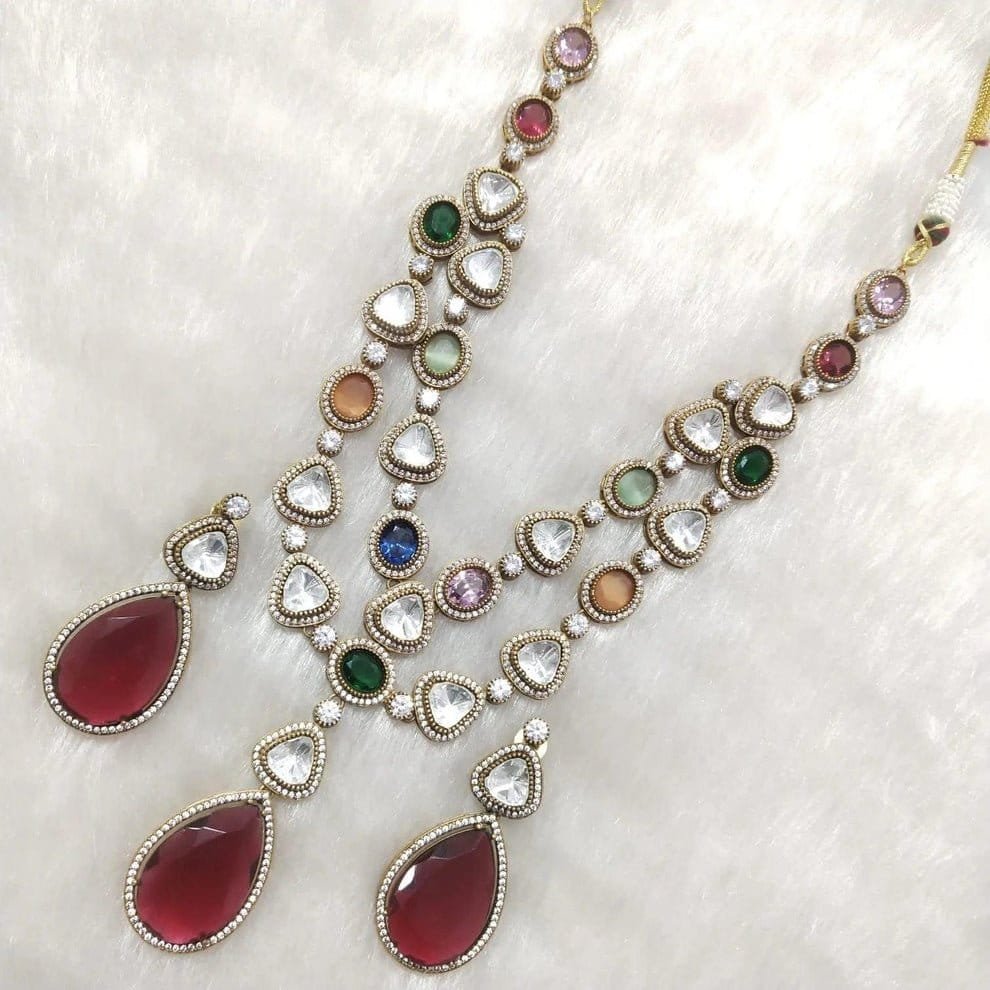 Sabyasachi Inspired Double Layer Moissanite Polki Necklace Set