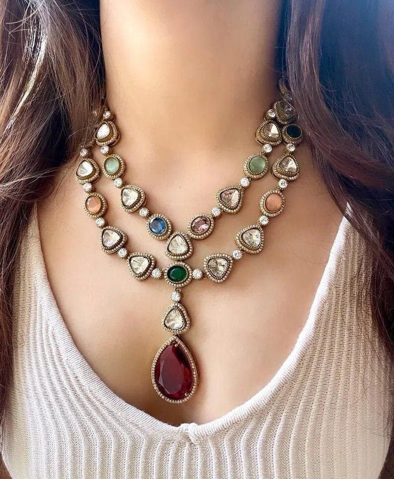 3 reviews for Sabyasachi Inspired Double Layer Moissanite Polki Necklace Set