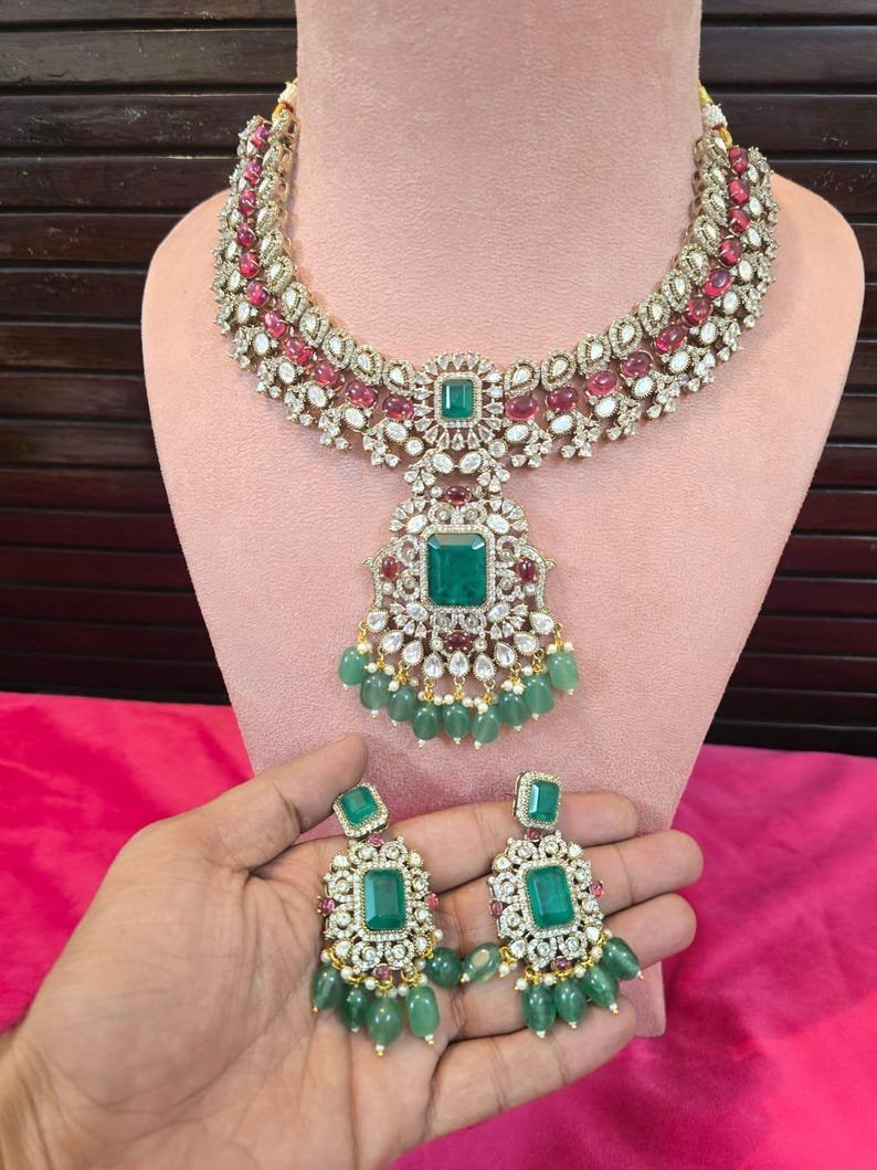 This bridal artificial jewellery set features finely crafted stones with a rich polish that reflects beautifully in both natural and indoor lighting. Despite its luxurious appearance, the necklace is lightweight and comfortable, making it suitable for long hours of wear during weddings and celebrations.