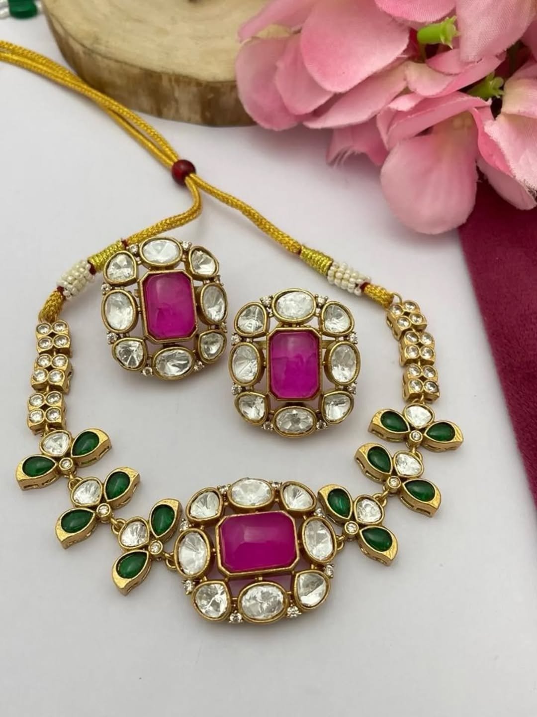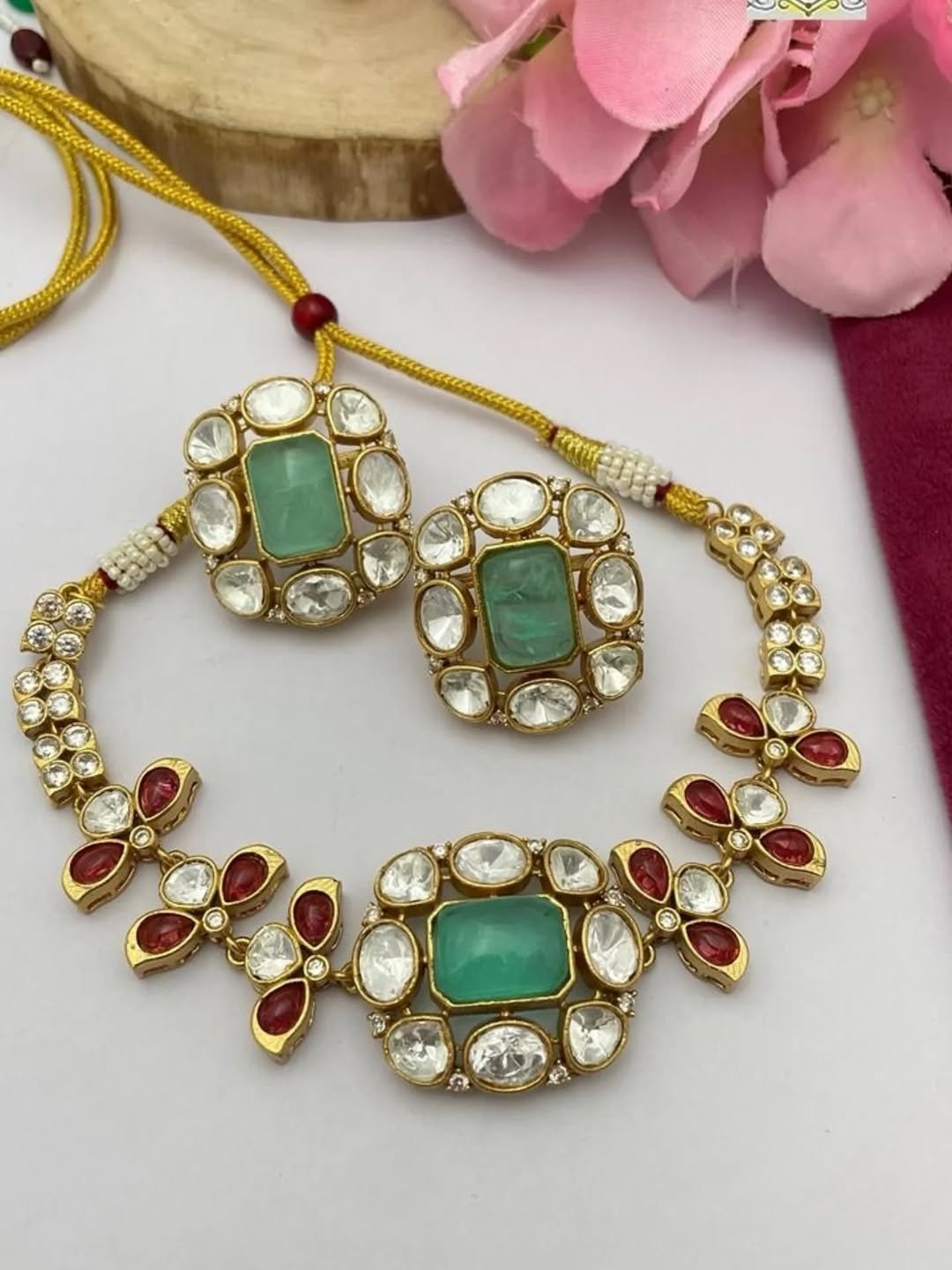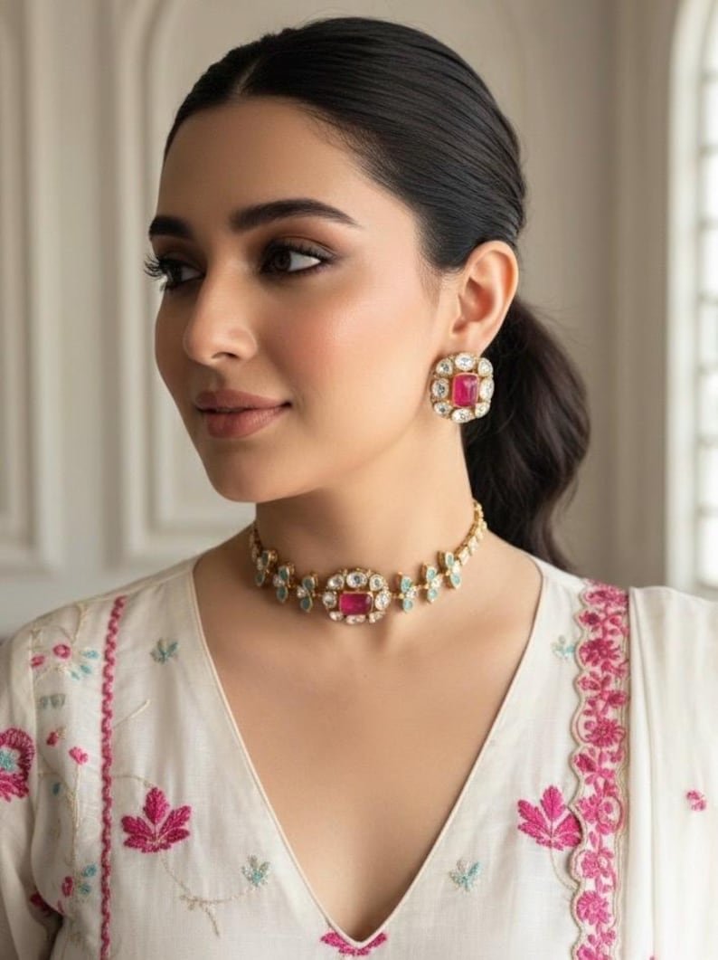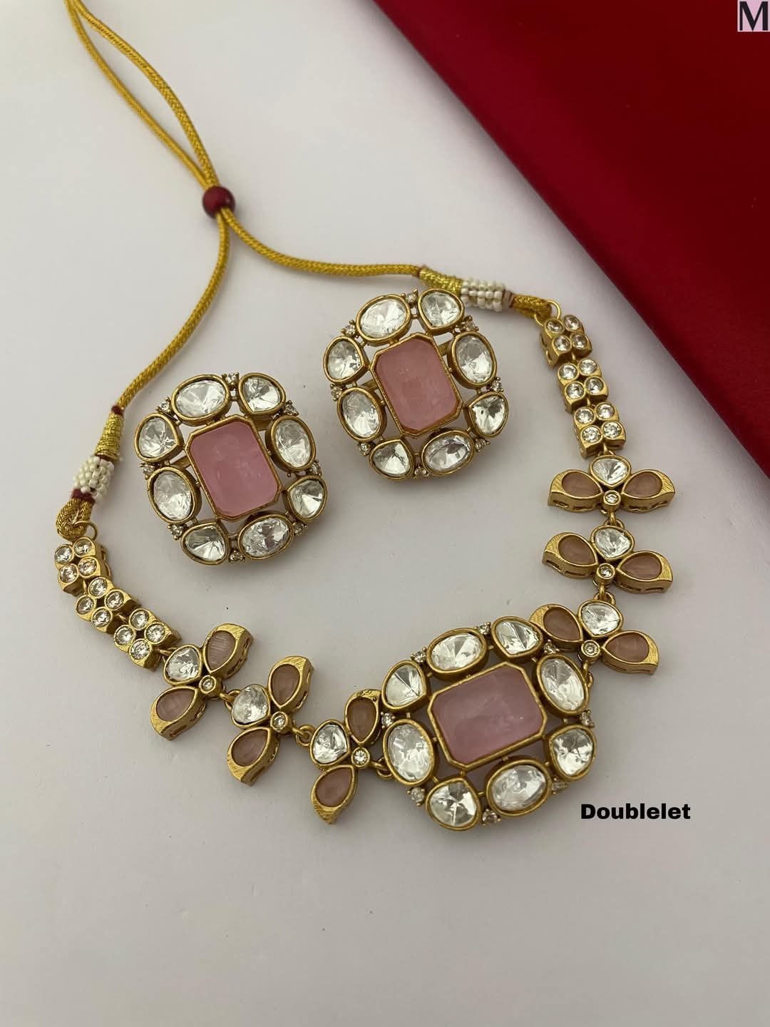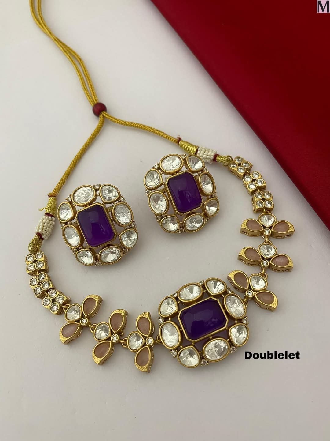 This moissanite necklace set is lightweight, skin-friendly, and comfortable for long wedding functions, receptions, and festive celebrations. The dual colour design allows easy pairing with both gold and pastel outfits, making it a versatile addition to your jewellery collection.
