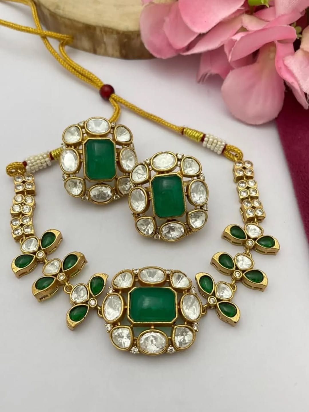 Moissanite necklace set designed with a beautiful dual colour finish, offering a perfect blend of modern elegance and traditional charm. Crafted using premium moissanite stones and a refined gold-toned base, this set is ideal for brides and women who love statement jewellery with a graceful look.