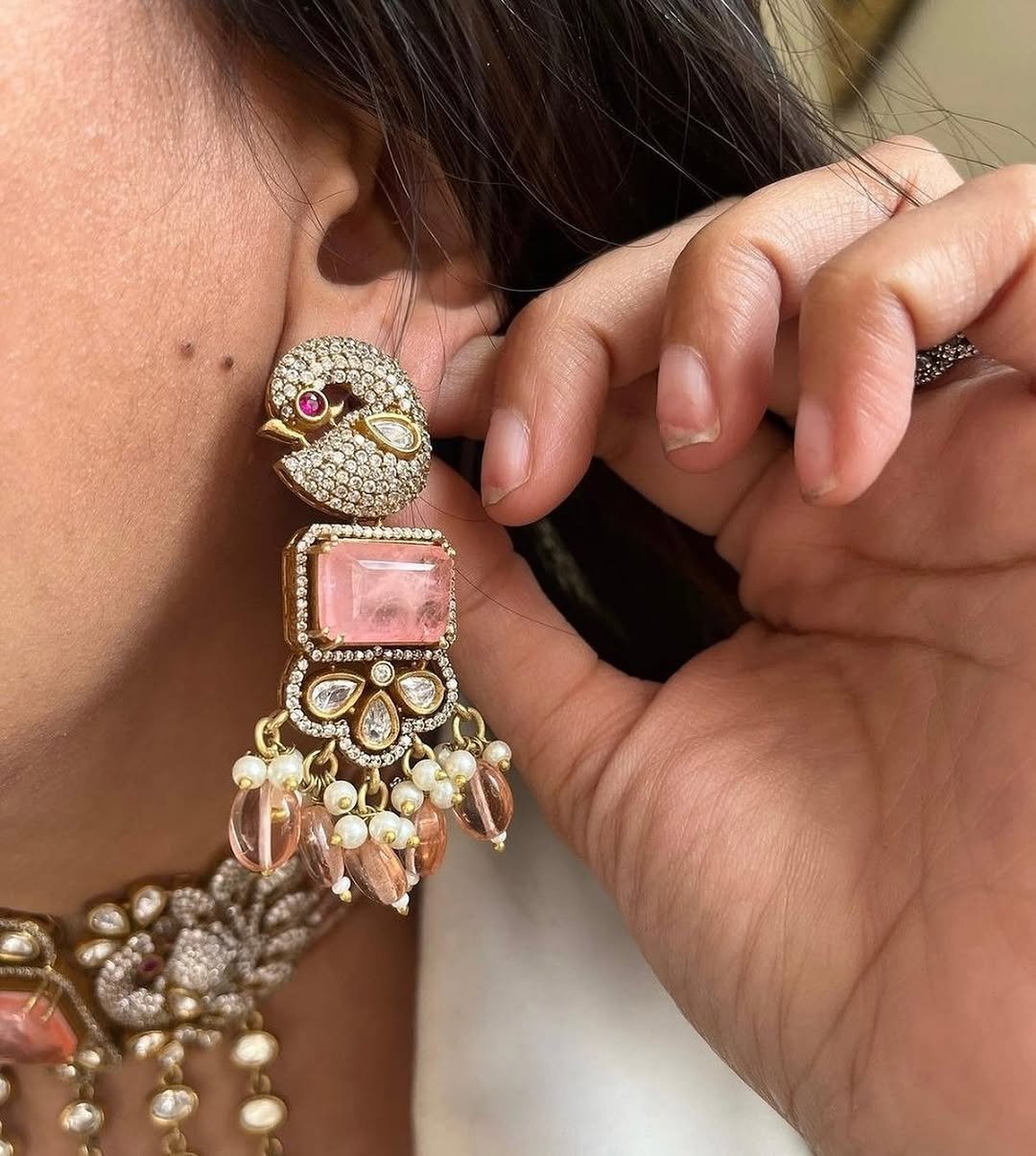 Stone Type: Polki, peach glass stones & faux pearls