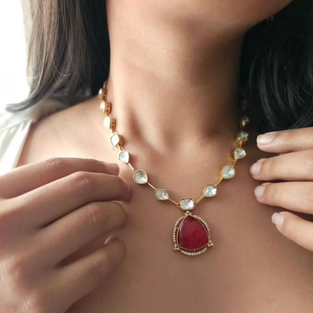 Micron gold-plated silver alloy with real Polki doublet stones