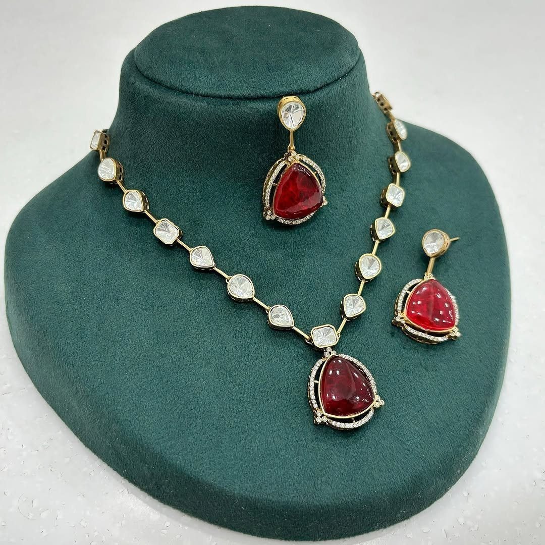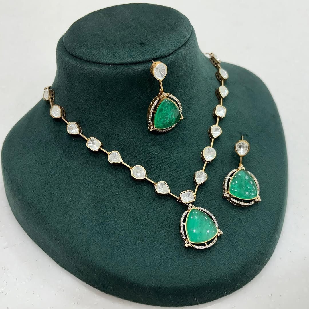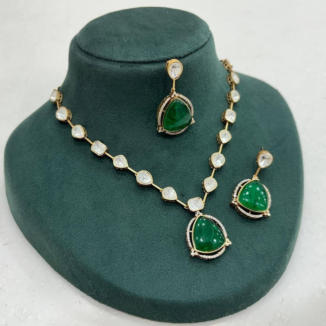 💎 The Doublet Layer Set blends traditional charm with high-fashion appeal. Handcrafted with precision, it features real uncut Polki doublets and radiant stones, all set in a luxe micron gold-plated silver alloy base. Whether you’re a bride or a fashion-forward guest, this is your go-to showstopper.